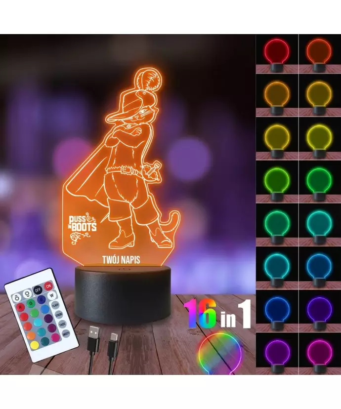 3D LED LAMP Nachtlampe Der gestiefelte Kater