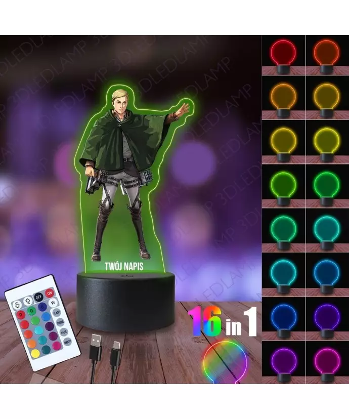 3D-LED-LAMP-Nachtlampe mit Erwin Smith Attack on Titan-Aufdruck