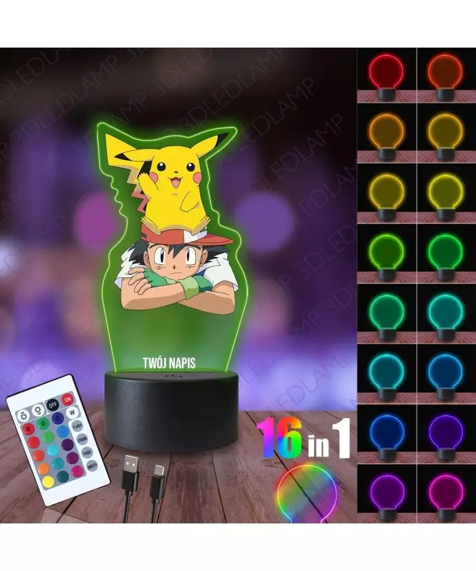 3D-LED-LAMP-Nachtlampe mit Pikachu- und Aschendruck