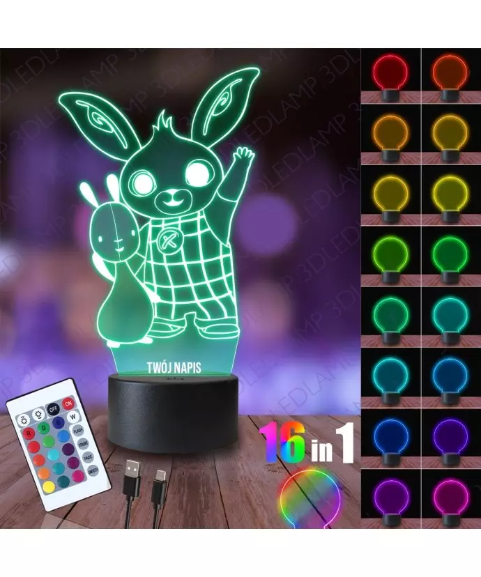3D-LED-LAMPE Nachtlampe Bing und Flop Rabbit