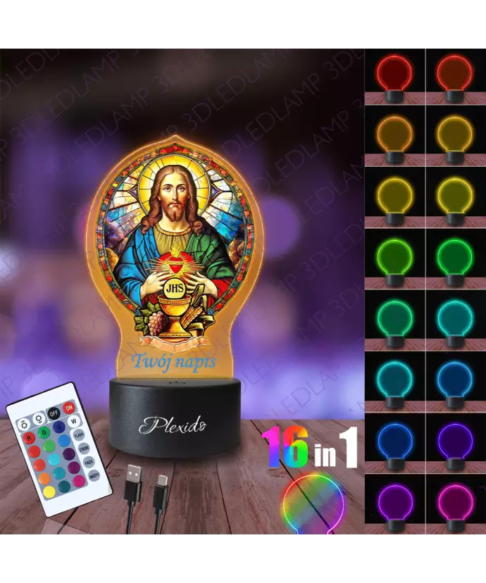 Nachtlampe 3D-LED-LAMPE Jesus Buntglas Erstkommunion