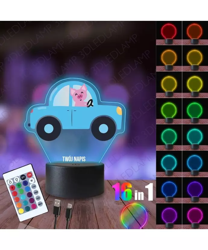3D-LED-LAMP-Nachtlampe mit Schweinchenauto-Aufdruck