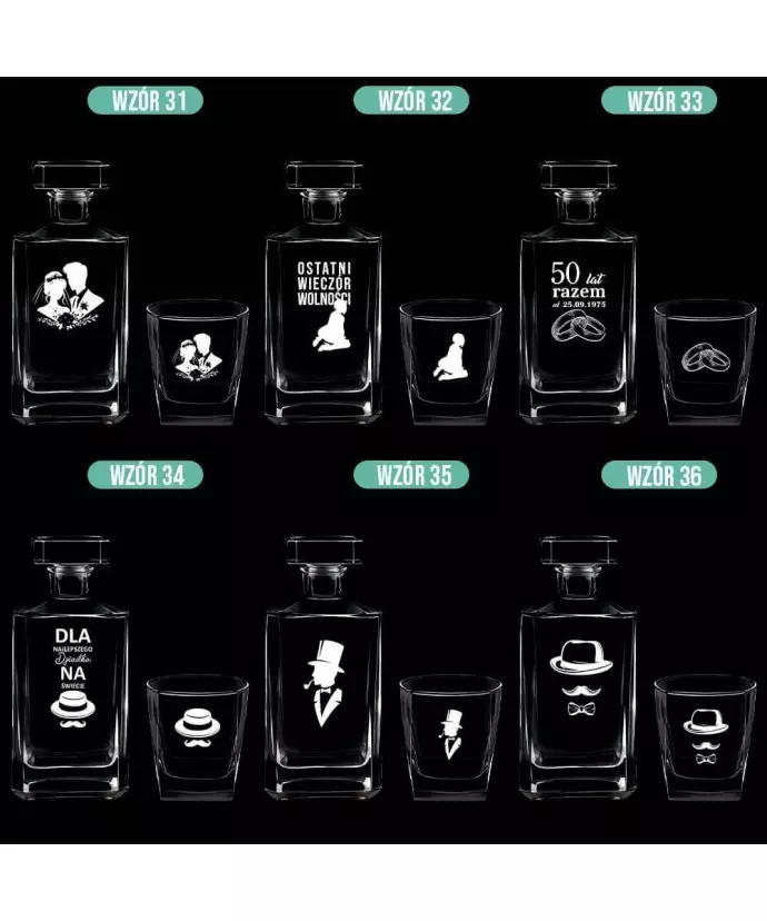 Nasza oferta obejmuje szeroki wybór personalizowanych zestawów do whisky z grawerem, które wyróżniają się nie tylko wysoką jakością, ale również eleganckim wyglądem. Kryształowe szkło, precyzyjne wykonanie i możliwość dodania indywidualnej dedykacji sprawiają, że każda karafka ze szklankami staje się wyjątkowym produktem. Zamów swój zestaw już dziś i podaruj bliskim coś naprawdę wyjątkowego lub dodaj go do swojej kolekcji.