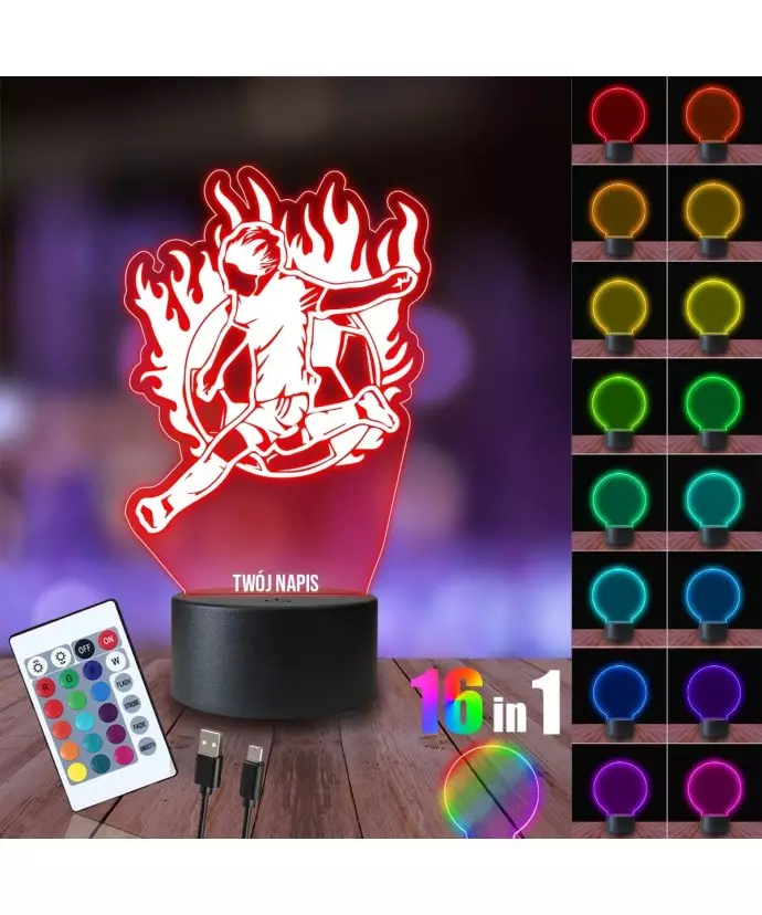 3D LED LAMP Nachtlampe Fußballspieler in Flammen Fußball