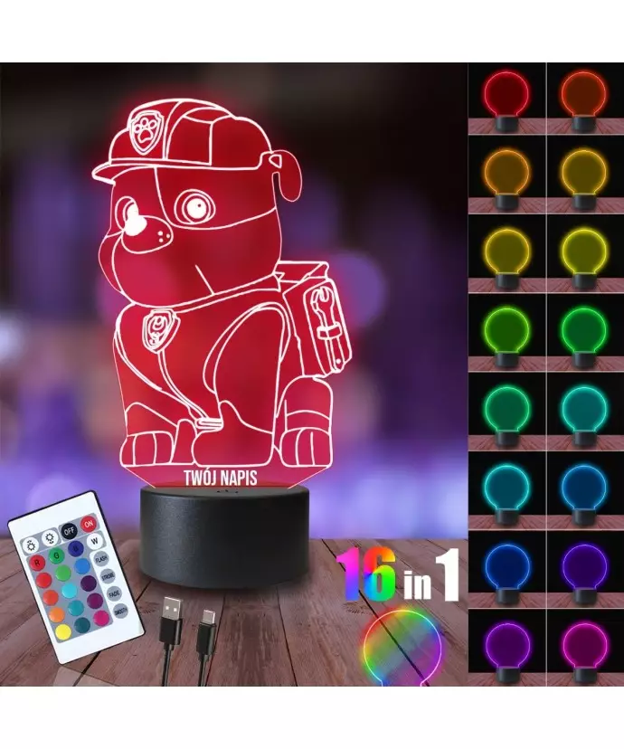 3D-LED-LAMPE Nachtlampe Paw Patrol Rubble Builder