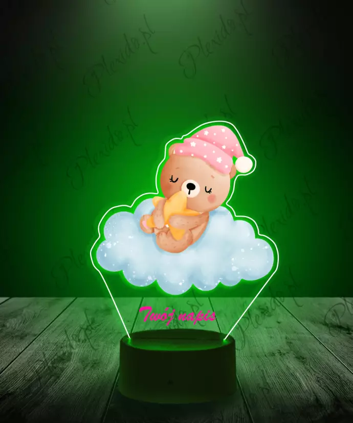 3D LED LAMP with Teddy Bear Print on Cloud Pink