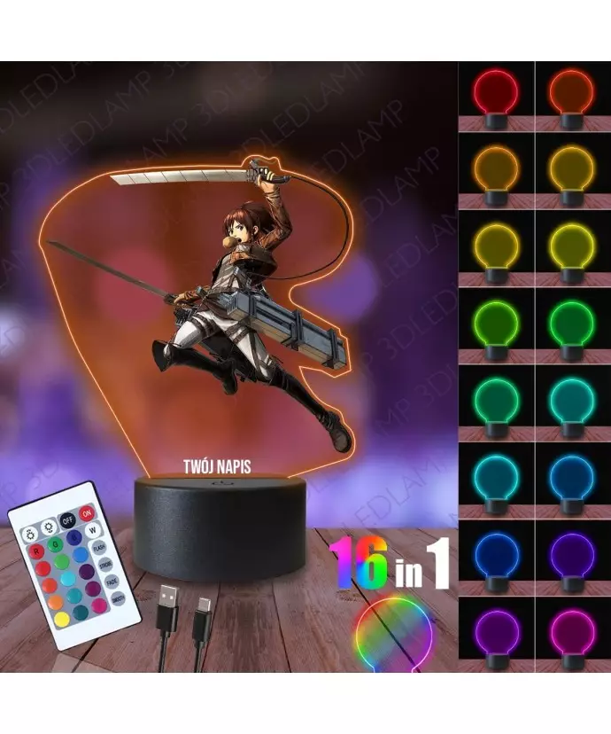 Night Light 3D LED LAMP with Print Attack on Titan Sasha Braus
