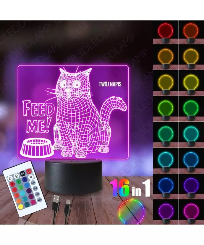 Night Light 3D LED LAMP Hungry Kitty