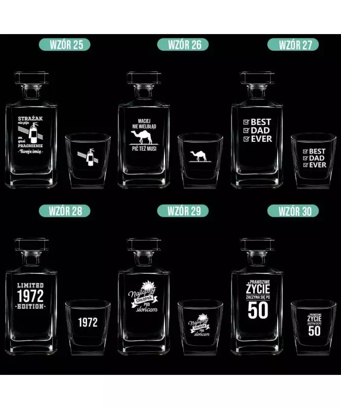 Nasza oferta obejmuje szeroki wybór personalizowanych zestawów do whisky z grawerem, które wyróżniają się nie tylko wysoką jakością, ale również eleganckim wyglądem. Kryształowe szkło, precyzyjne wykonanie i możliwość dodania indywidualnej dedykacji sprawiają, że każda karafka ze szklankami staje się wyjątkowym produktem. Zamów swój zestaw już dziś i podaruj bliskim coś naprawdę wyjątkowego lub dodaj go do swojej kolekcji.