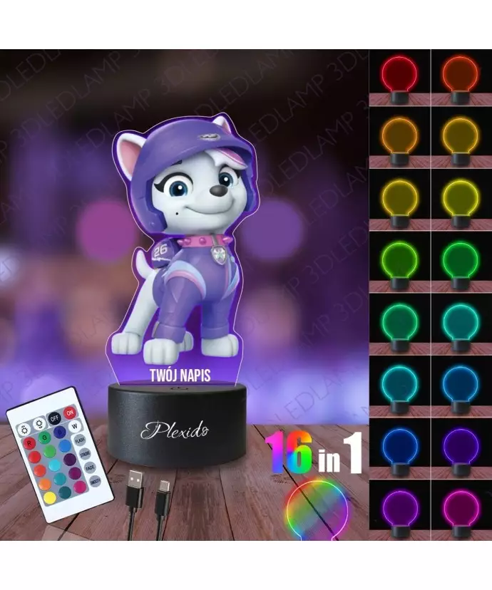 Night Light 3D LED LAMP with UV Print Paw Patrol Roxi
