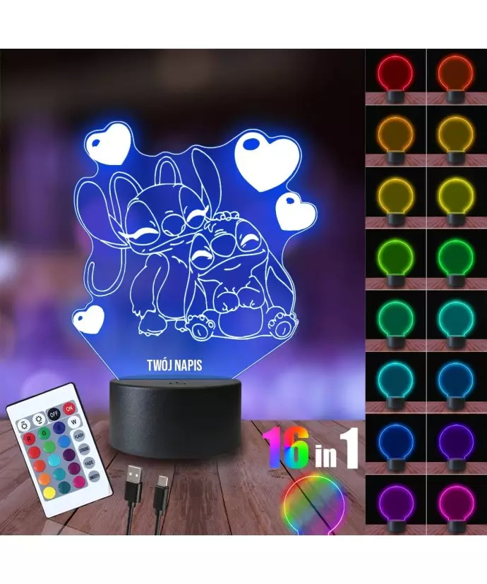Night Light 3D LED LAMP Stich and Angel Hearts