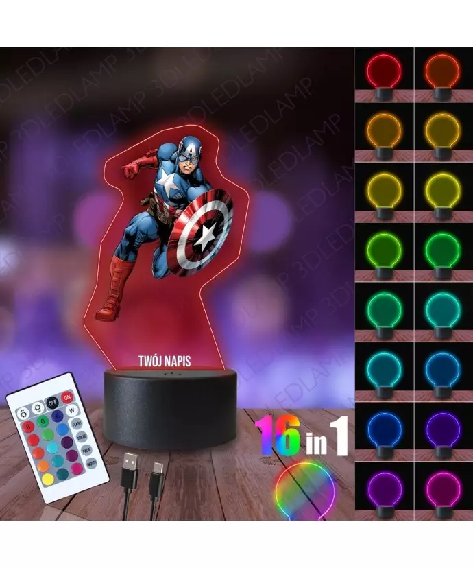 3D LED Night Light LAMP with Captain America Print