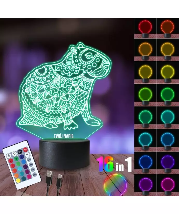 Night Light 3D LED LAMP Capybara Mandala