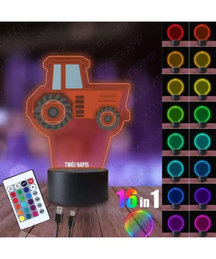 3D LED Night Light LAMP with Tractor Print Red
