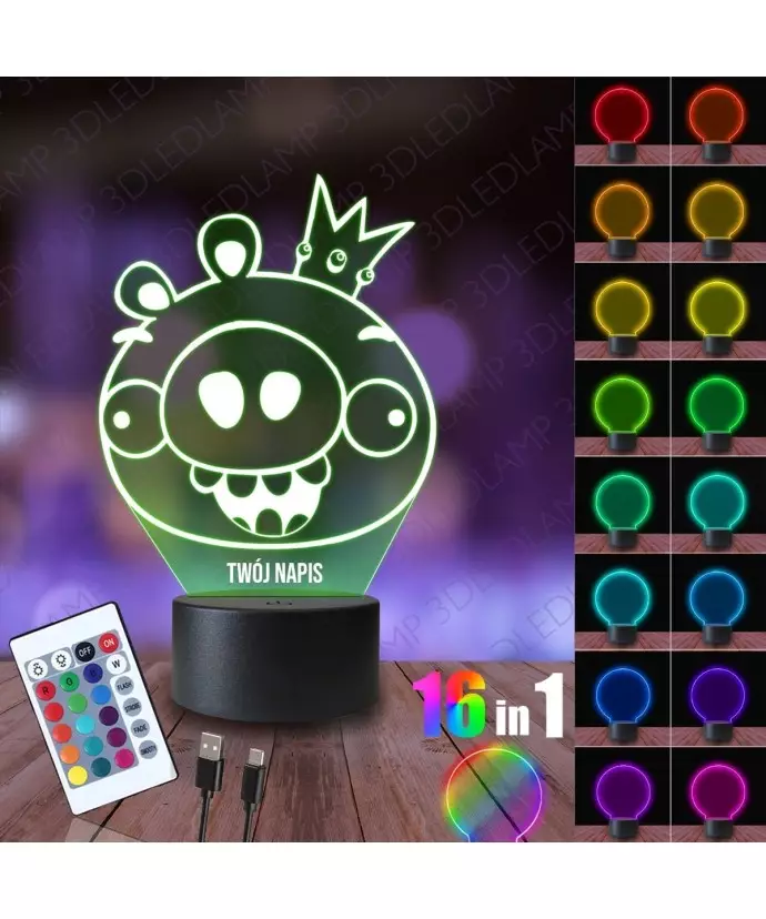 Lampka Nocna 3D LED LAMP Angry Birds Król Świń