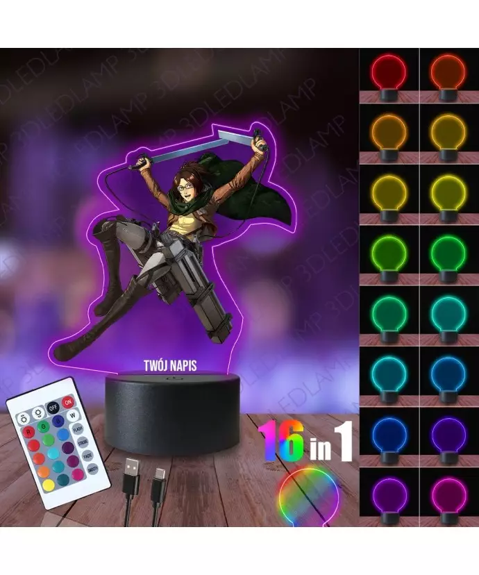 Lampka Nocna 3D LED LAMP z Nadrukiem Attack on Titan Hange Zoe