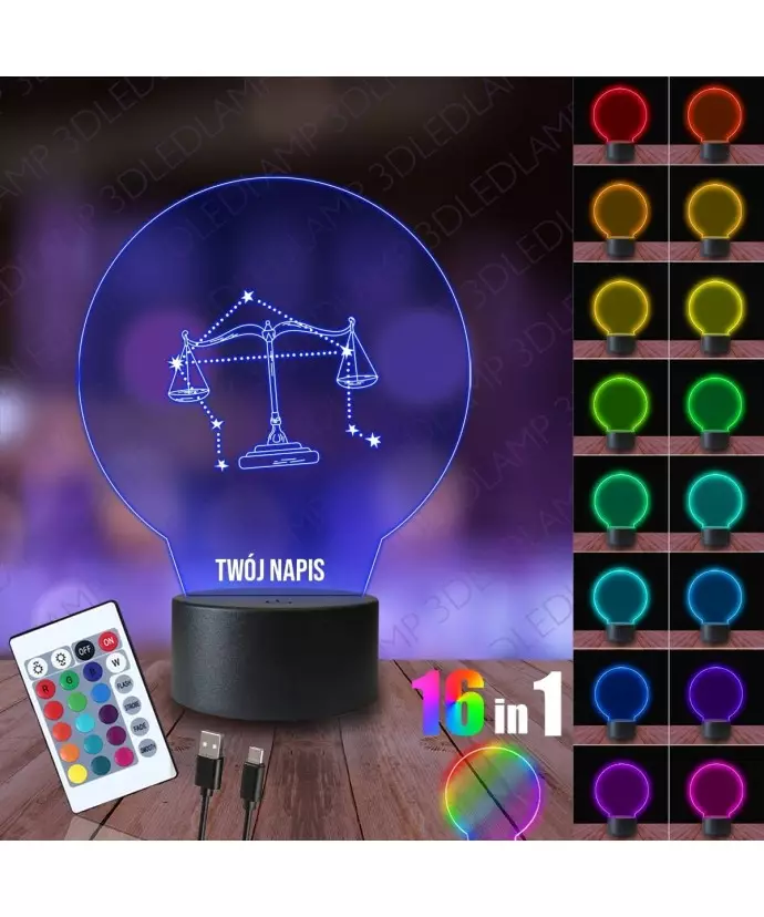 Lampka Nocna 3D LED LAMP Znak Zodiaku Waga