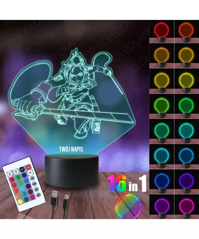 Lampka Nocna 3D LED LAMP Attack On Titan Annie Lionhart