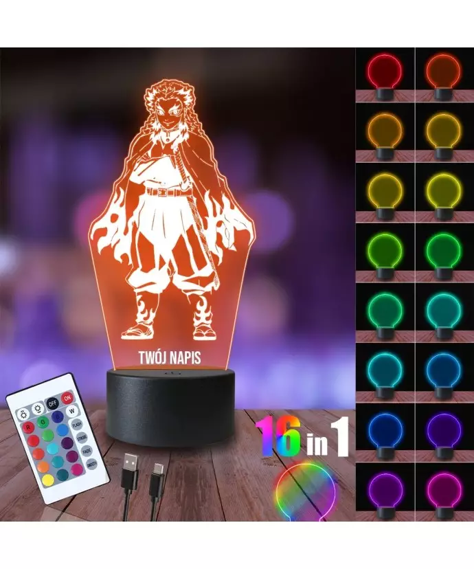 Lampka Nocna 3D LED LAMP Demon Slayer Rengoku