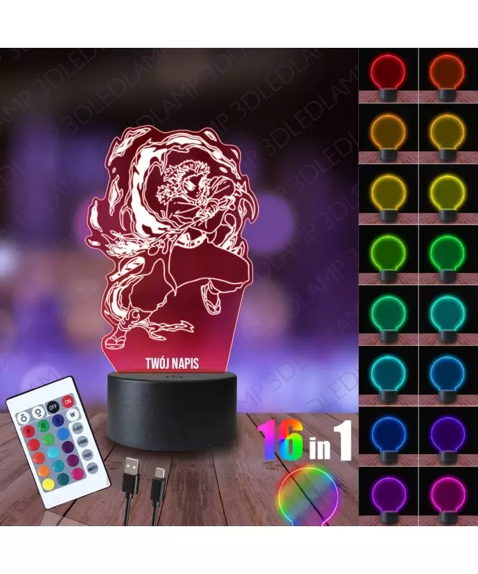 Lampka Nocna 3D LED LAMP Rengoku Demon Slayer
