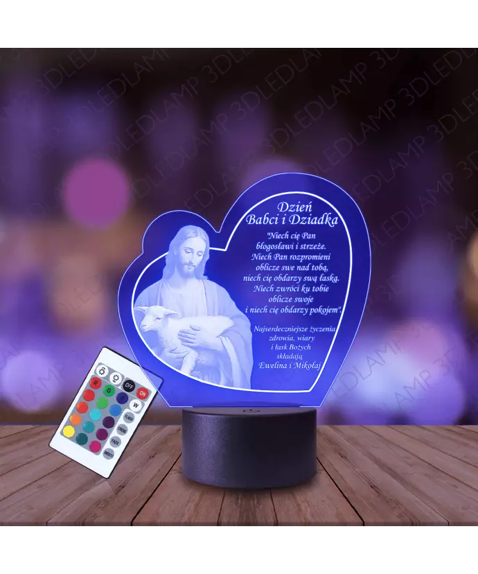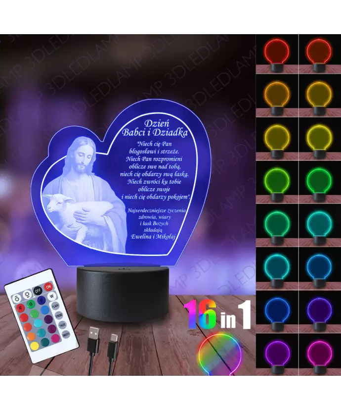 Lampka Nocna 3D LED Lamp Prezent Dzień Babci i Dziadka Jezus