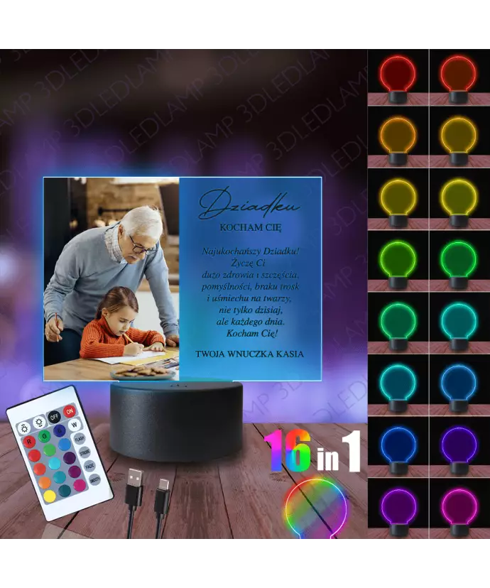 Lampka Nocna 3D LED Lamp Prezent dla Dziadka Twoje Zdjęcie