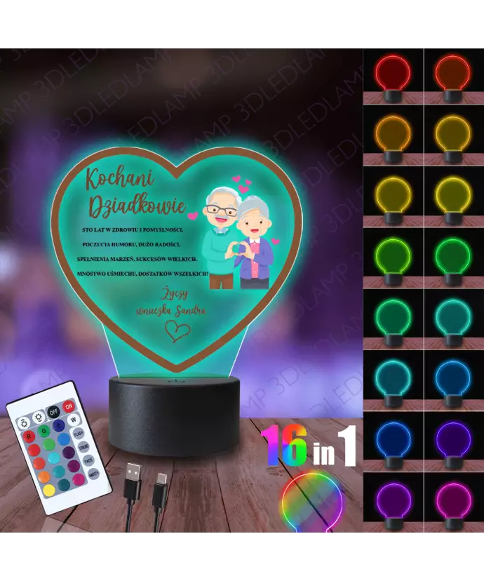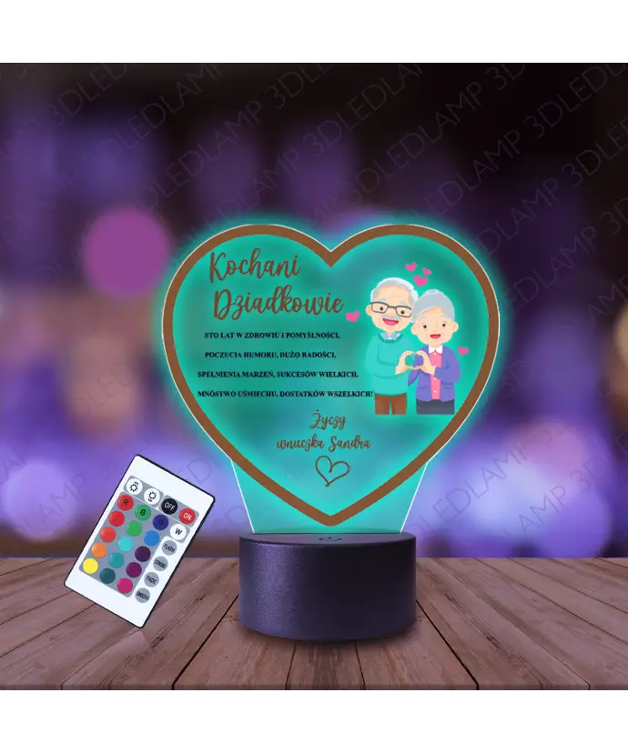 Lampka Nocna 3D LED Lamp Kochani Dziadkowie Serce