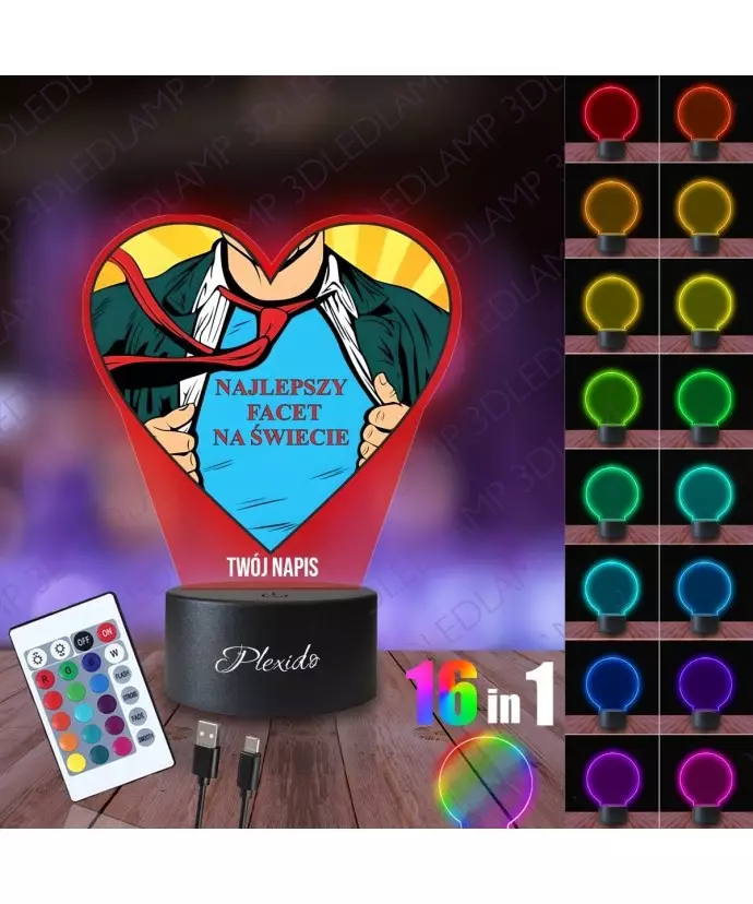Lampka Nocna 3D LED LAMP z Nadrukiem UV Prezent na Dzień Mężczyzny Najlepszy Facet
