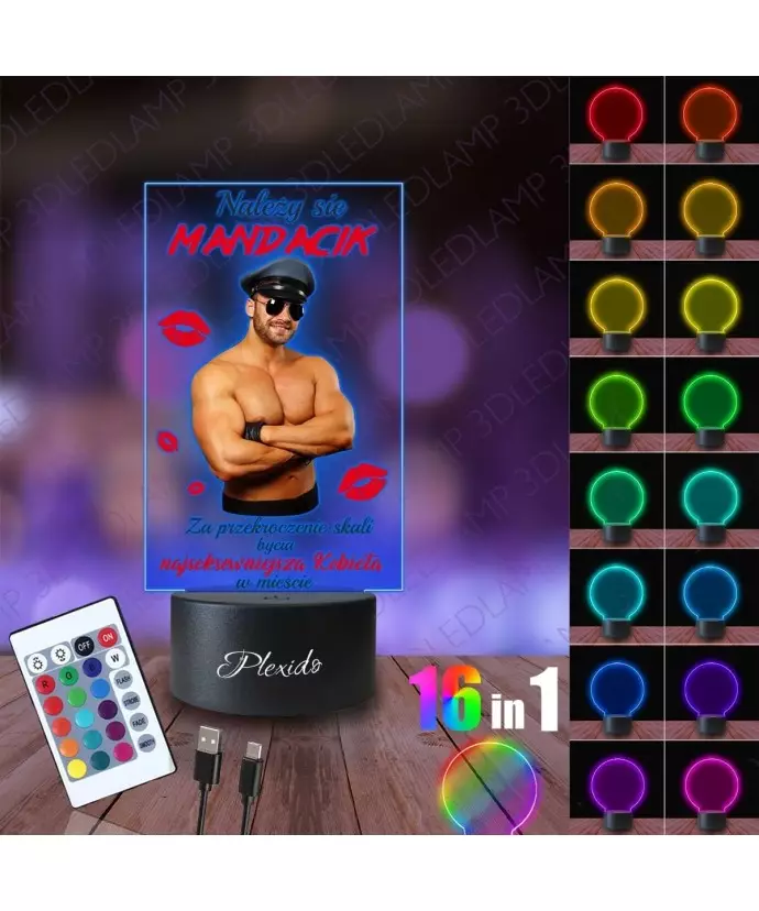 Lampka Nocna 3D LED LAMP z Nadrukiem UV Prezent na Dzień Kobiet Urodziny Mandacik