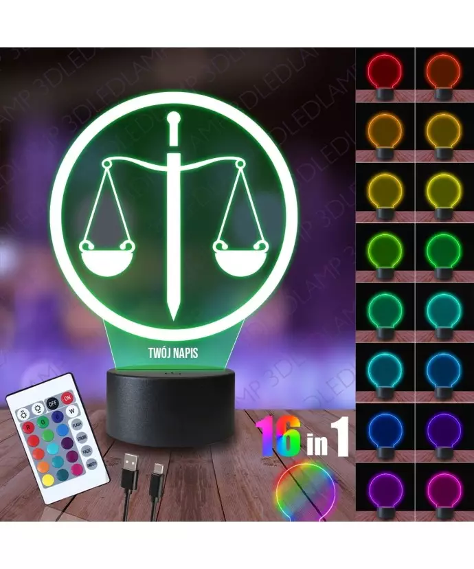 Lampka Nocna 3D LED LAMP Waga Sąd Prawo