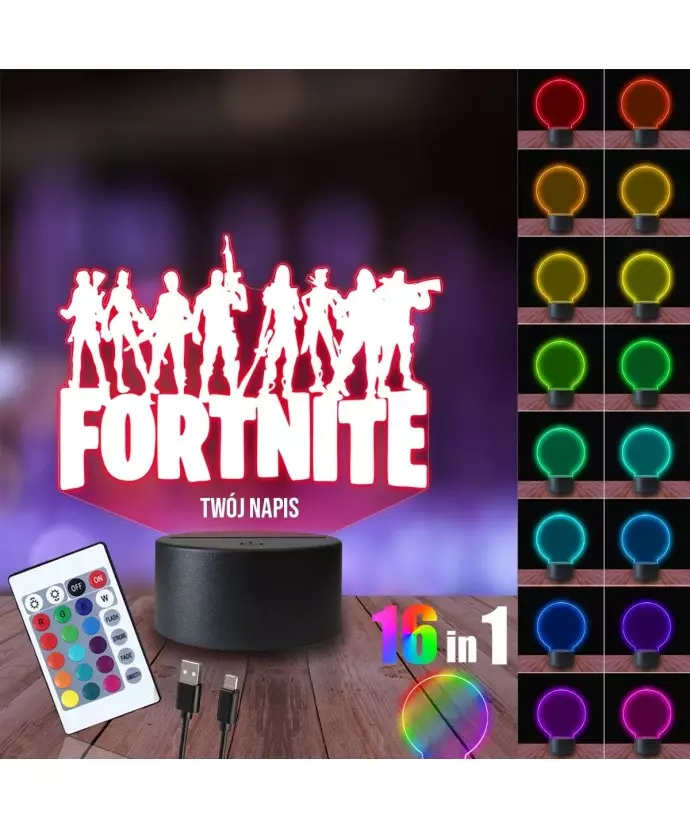 Lampka Nocna 3D LED LAMP Fortnite Postacie Napis