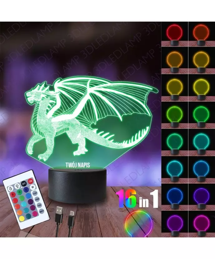 Lampka Nocna 3D LED LAMP Smok Syrax Gra o Tron