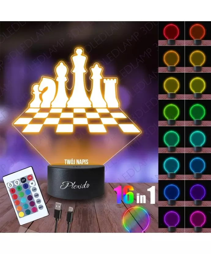 Lampka Nocna 3D LED LAMP Szachy Szachownica