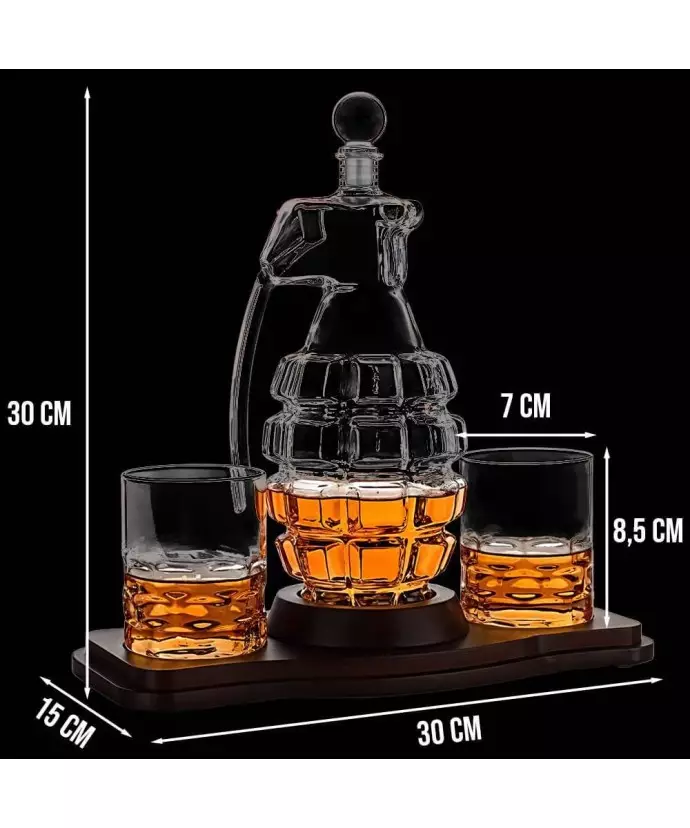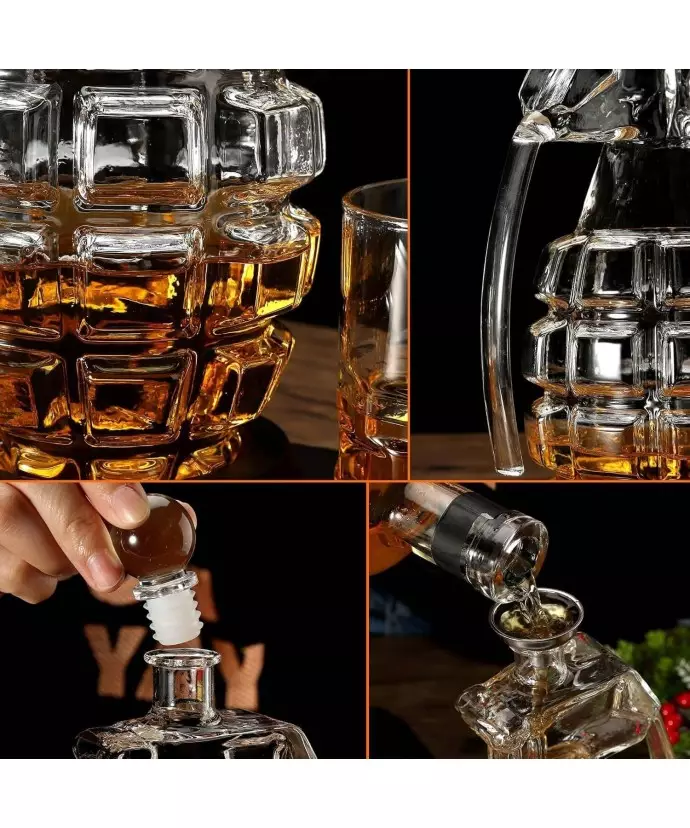 ➡️ Karafka marki Plexido została wykonana z najwyższej jakości szkła, dzięki czemu jest odporna na wszelkiego rodzaju uszkodzenia. Nowoczesny kształt oraz zdobienia czynią z zestawu niepowtarzalną, designerską ozdobę, która doskonale będzie prezentować się na stole, w witrynie jak i w otwartym barku. Kształt oraz budowa naszego zestawu posiada grube ozdobne dno, zapobiegające nagrzewaniu się ulubionego trunku.
