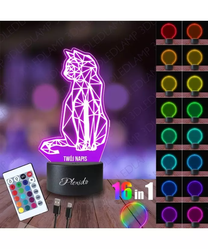 Lampka Nocna 3D LED LAMP Kotek Geometryczny