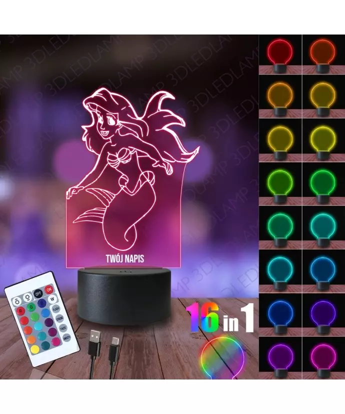 Lampka Nocna 3D LED LAMP Arielka Mała Syrenka