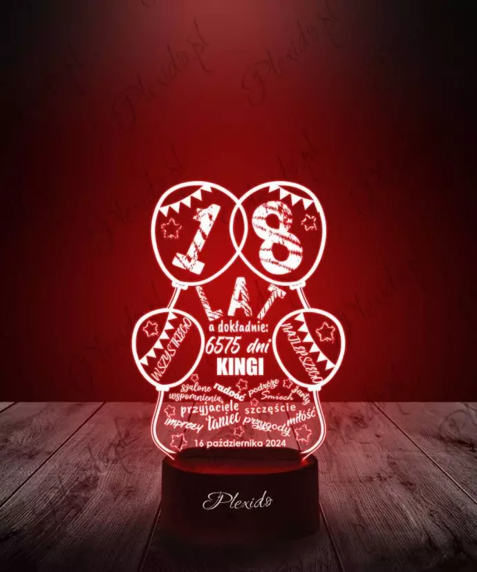 Lampka 3D LED LAMP Prezent Na 18 Urodziny Baloniki