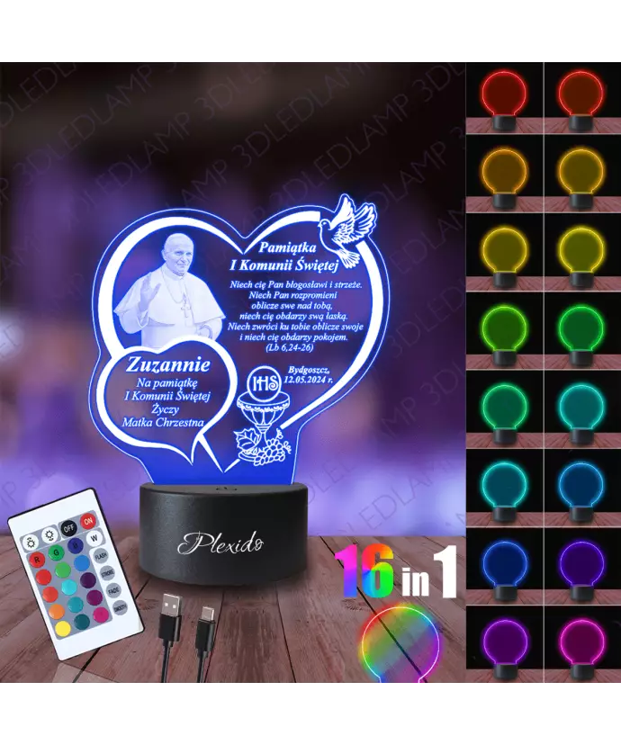 Lampka Nocna 3D LED LAMP Pierwsza Komunia Święta Jan Paweł II
