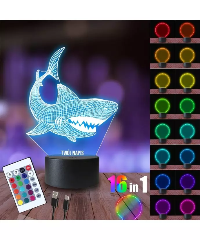 Lampka Nocna 3D LED LAMP Rekin Żarłacz
