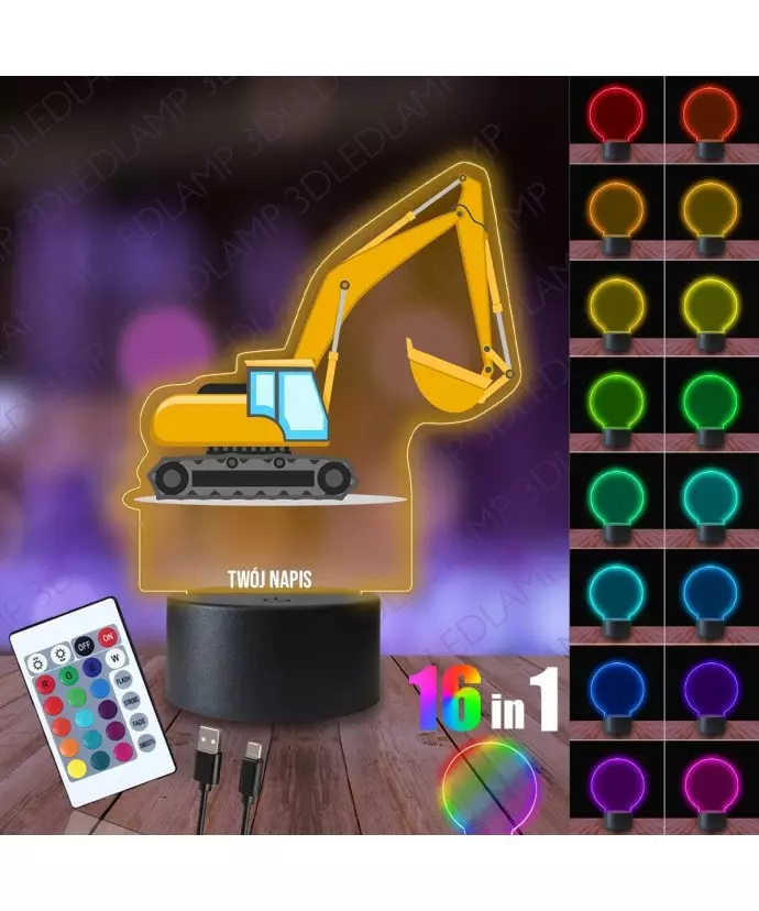 Lampka Nocna 3D LED LAMP z Nadrukiem Żółta Koparka