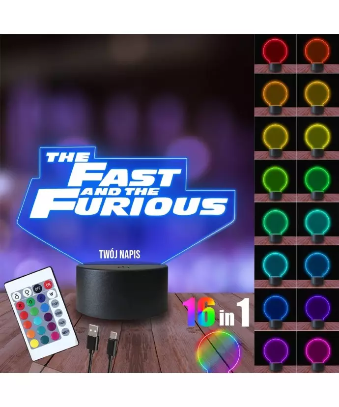 Lampka Nocna 3D LED LAMP Szybcy i Wściekli Napis