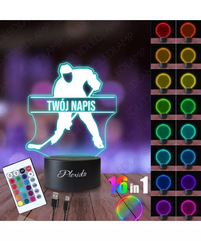 Lampka Nocna 3D LED LAMP Hokej Zawodnik Hokeja