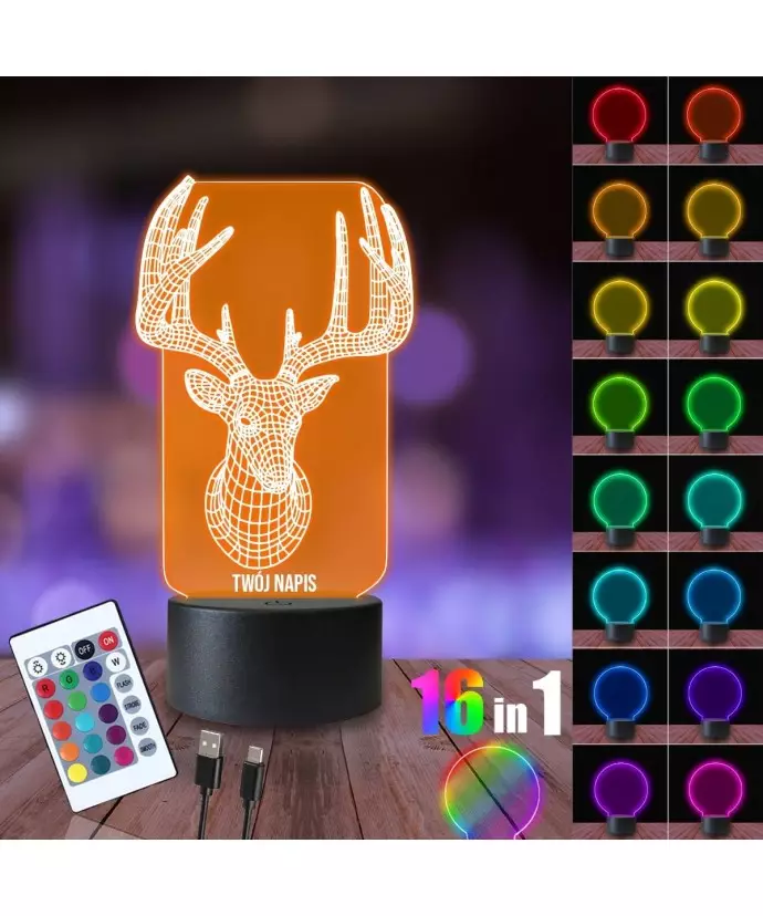 Lampka Nocna 3D LED LAMP Jeleń Rogi