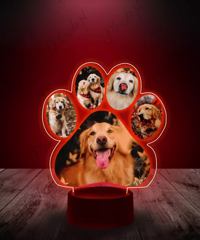 Lampka 3D LED LAMP z Nadrukiem Pies Twoje Zdjęcia Łapka