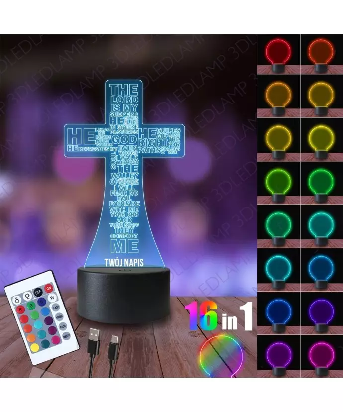 Lampka Nocna 3D LED LAMP Krzyż Modlitwa