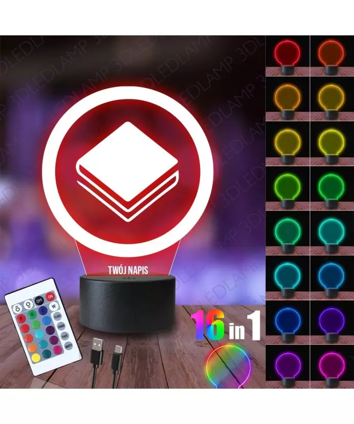 Personalizowana lampka 3D LED Lamp składa się z grawerowanej tablicy świetlnej oraz dedykowanej certyfikowanej podstawki.