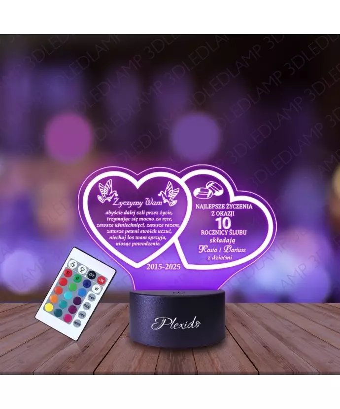 Lampka Nocna 3D LED LAMP Prezent na 10 Rocznicę Ślubu