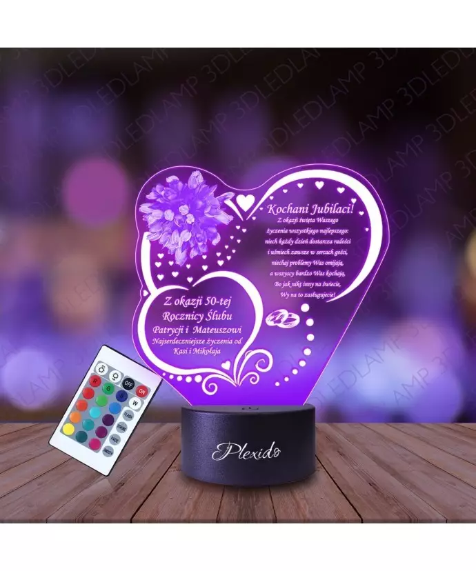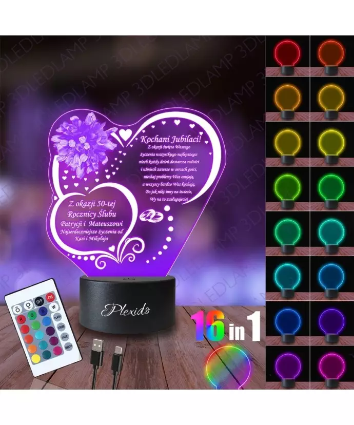 Lampka Nocna 3D LED LAMP Prezent na 50 Rocznicę Ślubu