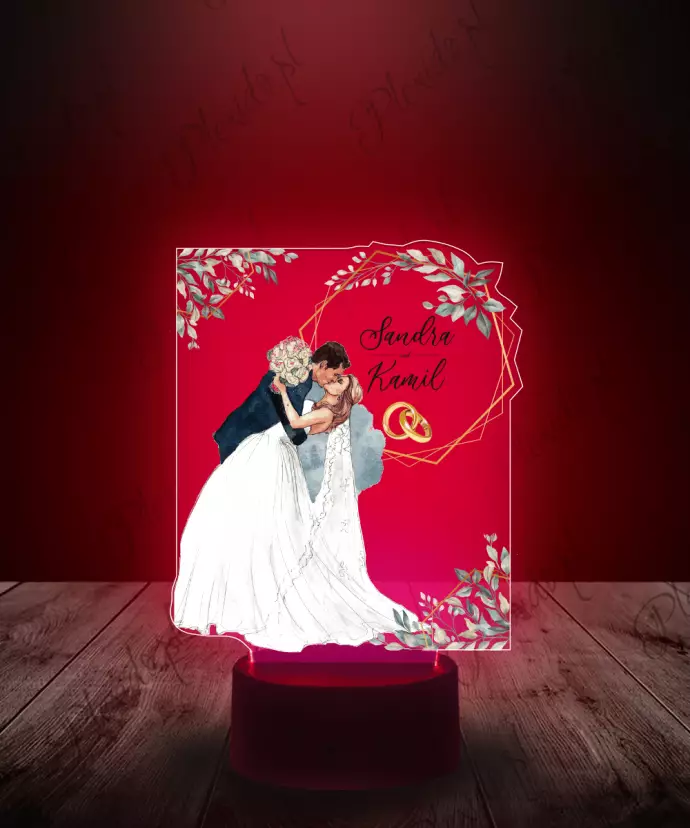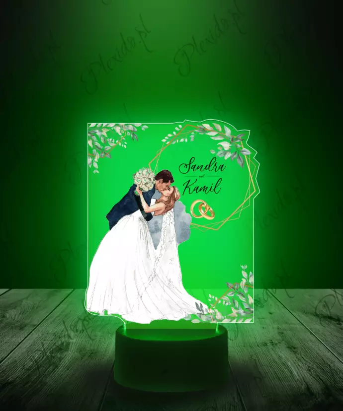 Lampka LED z Nadrukiem Plexido Pamiątka na Ślub Para Młoda