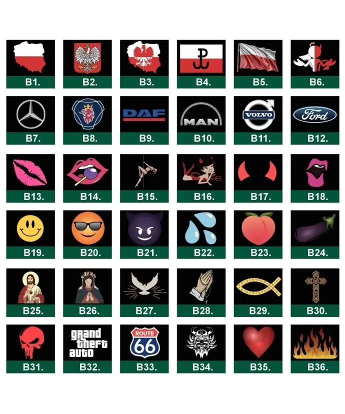 ✅Emotikony od A1 od H36 z uwzględnieniem jej położenia (lewa lub prawa strona)